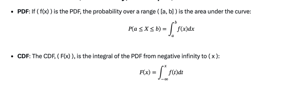 Absolutely! The CDF is the integral of the PDF. Conversely, the PDF is the derivative of the CDF (if it’s differentiable).
